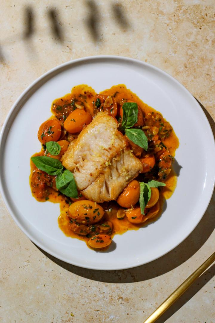 Black Cod with Chili Brown Butter & Sungolds
