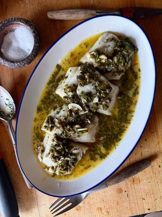 Black Cod with Herb-Packed White Wine Sauce